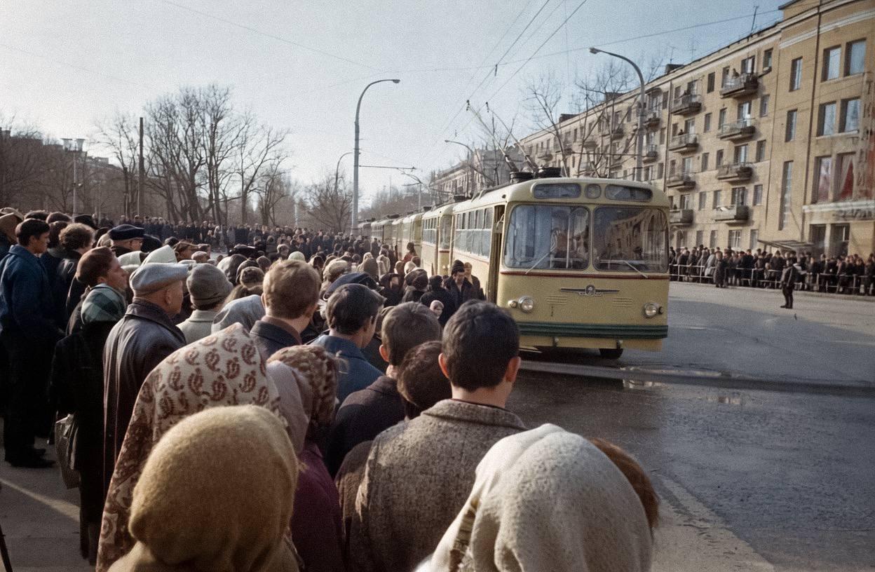 Открытие троллейбусного движения в городе в 1969 году.